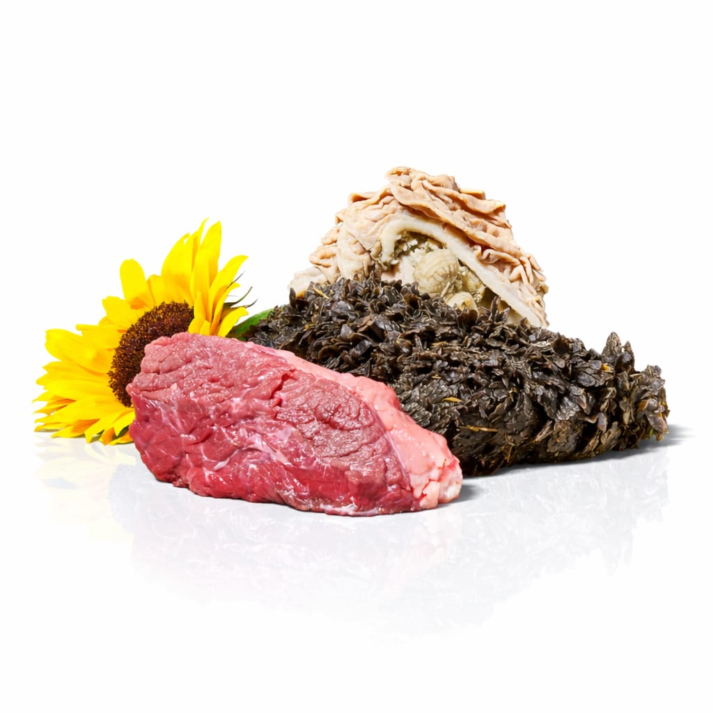 Unser gewolfter Aktiv-Mix vom Rind besteht aus energiereichem grünem Pansen, Blättermagen und Stichfleisch. Er versorgt Deinen Hund mit leicht verdaulichem Eiweiß, wertvollen Verdauungs-Enzymen und Faserstoffen sowie einer extra Portion Eisen, die den Sauerstofftransport positiv beeinflusst.
