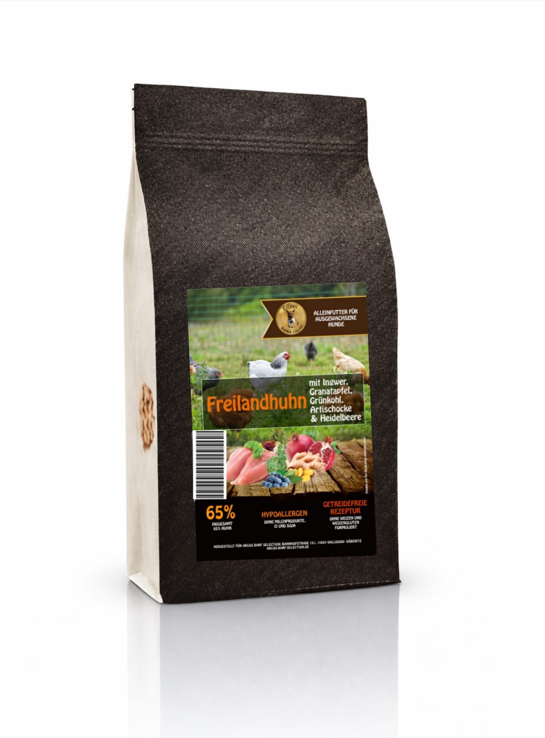 65% Huhn (35% frisch zubereitetes Freilandhuhn, 22% getrocknetes